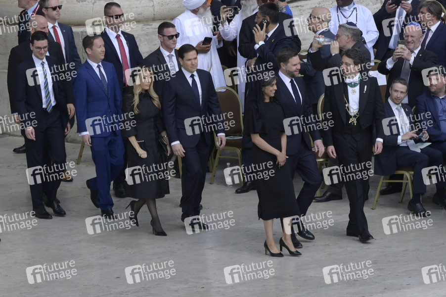 Marco Rubio mit Ehefrau Jeanette Dousdebes Rubio und J.D. Vance mit Ehefrau Usha Vance bei der Amtseinführung von Papst Leo XIV. auf dem Petersplatz. Vatikanstadt, 18.05.2025