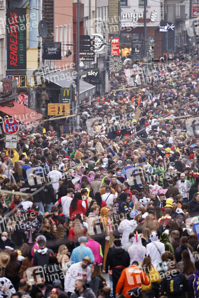 Karneval, Brauchtumszone, Brauchtum, Corona, Corona-Maßnahmen, 3G, 2G, 2G+, 3G+, 2G-Regel, 2G+-Regel, Delta-Variante, Omikron, Infektion, Infektionsgeschehen, Mindestabstand, Maskenpflicht, geimpft, genesen, getestet, Geimpfte, Genesene, Getestete, Covid, Covid19, Covid-19, Sars-Cov2, Virus, Viren, Infektionsschutzgesetz, Weiberfastnacht, Karnevalssaison, Corona-Lage, Inzidenz, Alaaf, Gastronomie, Sicherheit, Corona-Zahlen, Hotspot, Hotspots, Kontrolle, Besucher, Inzidenzzahlen, Superspreader-Event, Touristen, Ungeimpfte, ungeimpft, Corona-Impfung, Impfung, Infektionsrisiko, Festkomitee Kölner Karneval, 2G-Karneval, Dreigestirn, Narren, Tradition, Kultur, Brauchtum, Feiern, Schutz, Vorbeugung, Prävention, Corona-Karneval, Karnevalsfiguren, Tradition, Karnevalsgesellschaft, Brauchtum, Karnevalsgesellschaften, Rosenmontag, Zülpicher Straße, Quartier Latäng, Menschenmassen, Menschenmasse, Menschenmenge, überfüllt, Gedränge, dicht an dicht, Kontaktbeschränkungen, zwischenmenschliche Kontakte, Social Distancing
