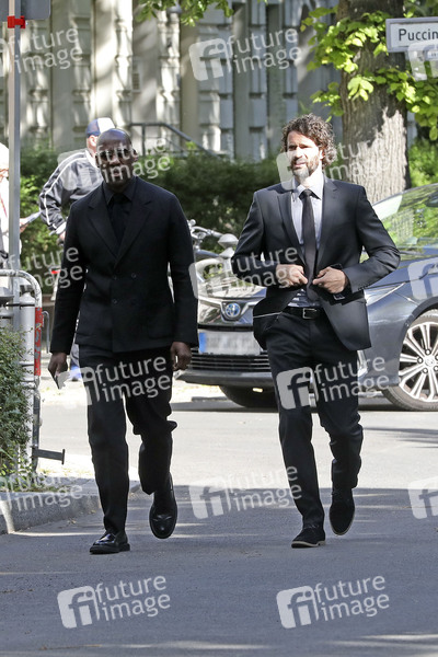 Joe Chialo und Arne Friedrich bei der Beisetzung der Holocaust-Überlebenden Margot Friedländer auf dem Jüdischen Friedhof in Berlin-Weißensee. Berlin, 15.05.2025
