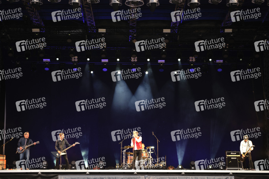 Marcus Wichary, Kai Schiering, Oliver Perau, Hachy M. Hachmeister und Jenzzz Gallmeyer von Terry Hoax live beim Autokultur-Konzert auf dem Schützenplatz. Die Besucher verfolgen unter Berücksichtigung klarer Hygiene-Vorschriften während der Corona-Krise den Auftritt aus dem Auto. Hannover, 10.05.2020