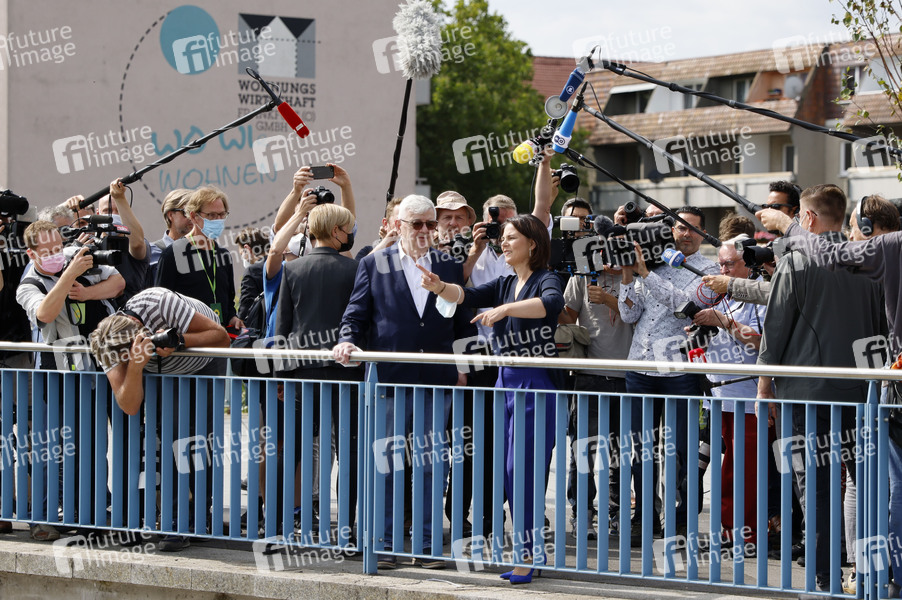 Joschka Fischer und Annalena Baerbock auf der Stadtbrücke in Frankfurt (Oder) im Rahmen ihrer Wahlkampftour. Frankfurt (Oder), 16.08.2021