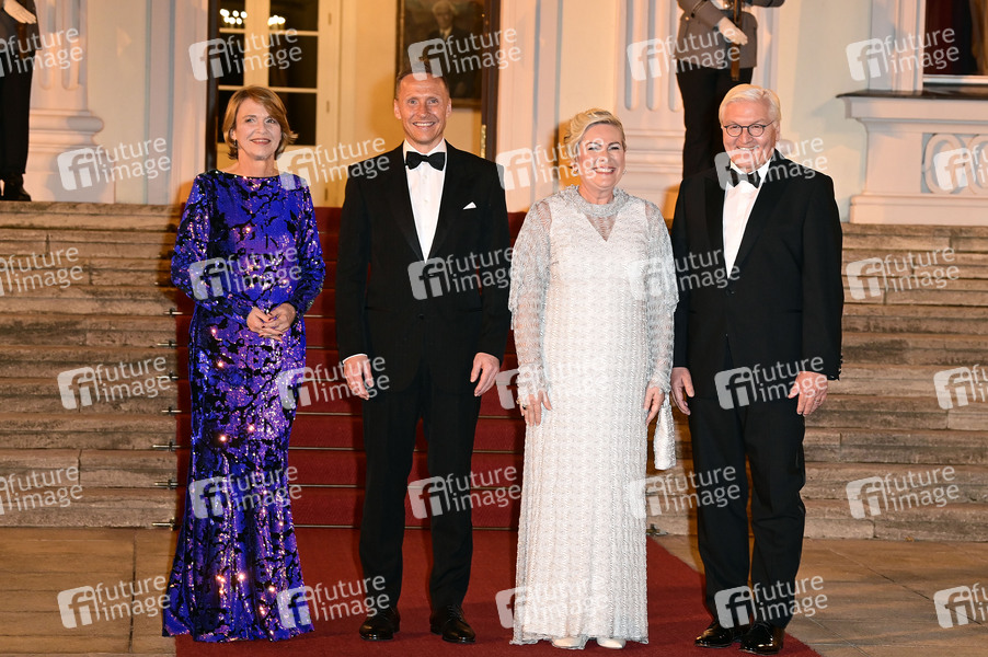 Elke Büdenbender, Björn Skulason, Halla Tomasdottir und Frank-Walter Steinmeier bei der Ankunft zum Abendessen anlässlich des 25. Jubiläums der Nordischen Botschaften im Schloss Bellevue. Berlin, 21.10.2024