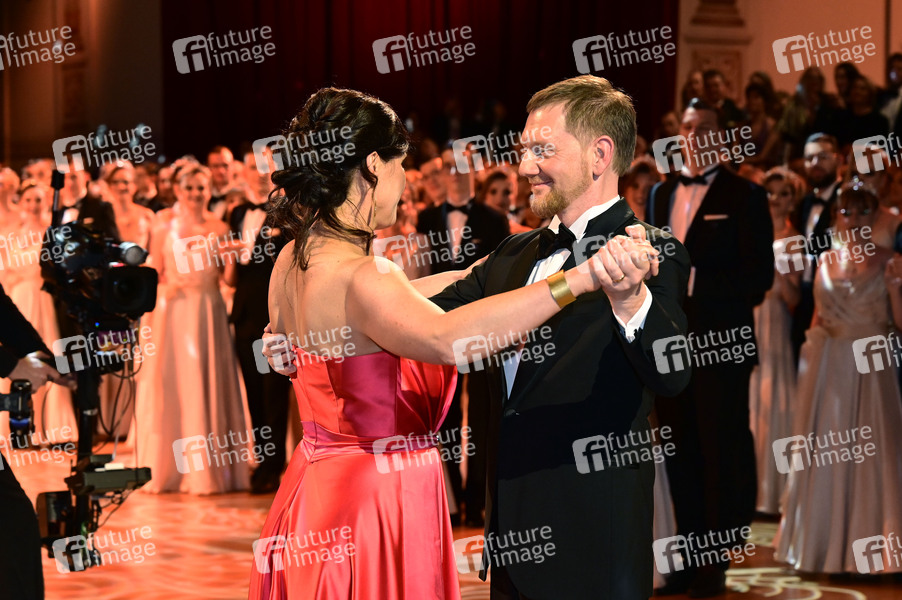 Michael Kretschmer mit Partnerin Annett Hofmann beim 17. SemperOpernball 2025 in der Semper Oper. Dresden, 07.02.2025