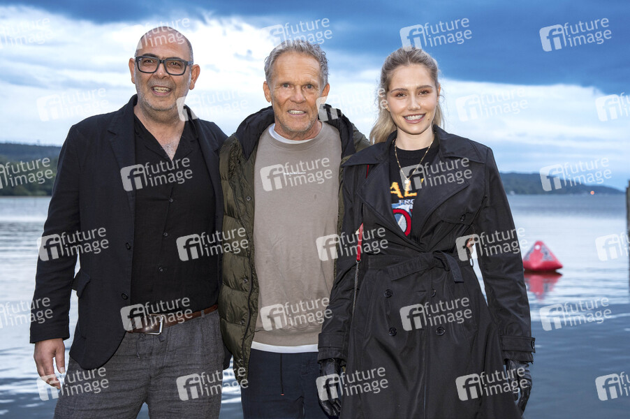 Hannes Ringelstetter, Christian Tramitz und Mitsou Jung bei der Premiere von zwei neuen Folgen der ARD-Vorabendserie 'Hubert ohne Staller' auf dem Open Air Starnberg 2025 im Open Air Kino im Seebad. Starnberg, 05.08.2025