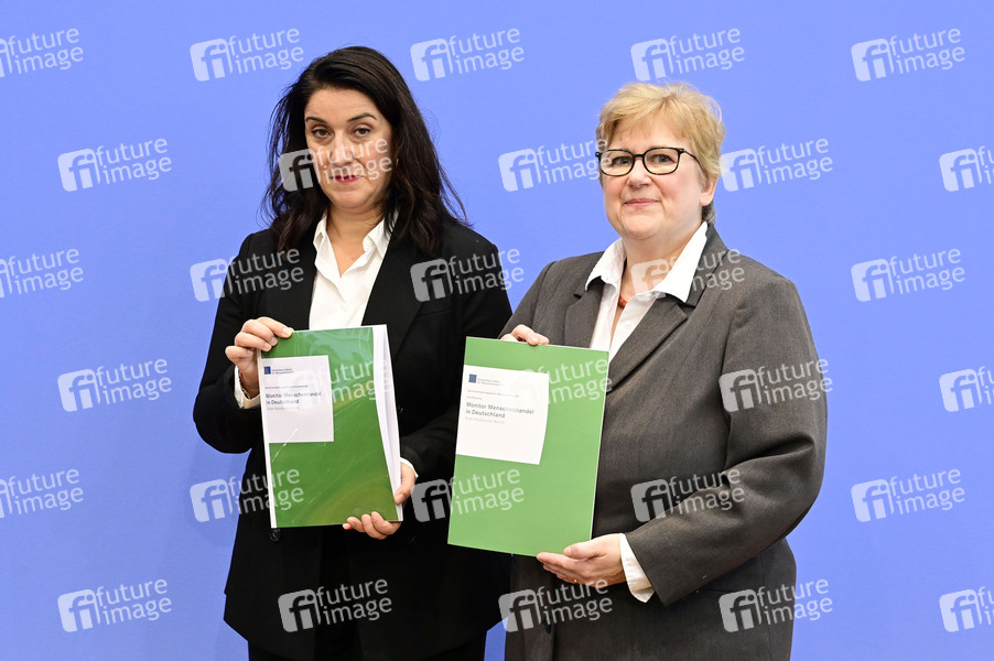 Naile Tanis und Beate Rudolf bei der Bundespressekonferenz zur Vorstellung des 'Monitor Menschenhandel in Deutschland - Erster Periodischer Bericht' im Haus der Bundespressekonferenz. Berlin, 17.10.2024