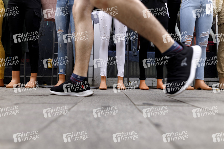 Schuhe, Füße, Schuh, Fuß, Schuhwerk, Schusters Rappen, Sohle, Fußbett, Laufen, Gehen, Walken, Schuhsohle, Schuster, Mode, Bekleidung, Sandalen, Sneaker, Treter, Sportschuhe, Schuhgröße, Gelenke, Schuhe kaufen, barfuß, Passanten, Laufkundschaft, Schuhmacher, Sportschuh, Zehen, Schuhbett, Laufkilometer, Distanz, Strecke, Einkaufen gehen, Bummeln, Shoppen, Flanieren, per pedes, zu Fuß, Symbolbild, Symbolfoto