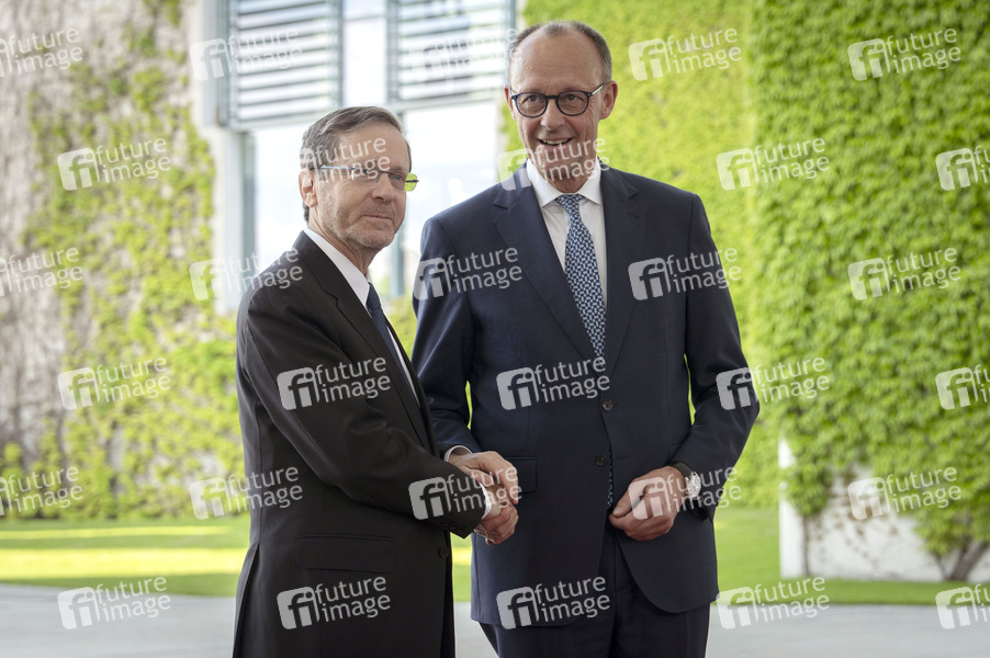 Friedrich Merz beim Empfang von Isaac Herzog zu einem gemeinsamen Gespräch im Bundeskanzleramt. Berlin, 12.05.2025