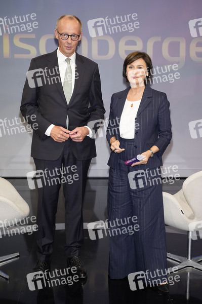 Friedrich Merz und Sandra Maischberger in der ARD-Talkshow 'maischberger' im Studio Berlin Adlershof. Berlin, 01.07.2025