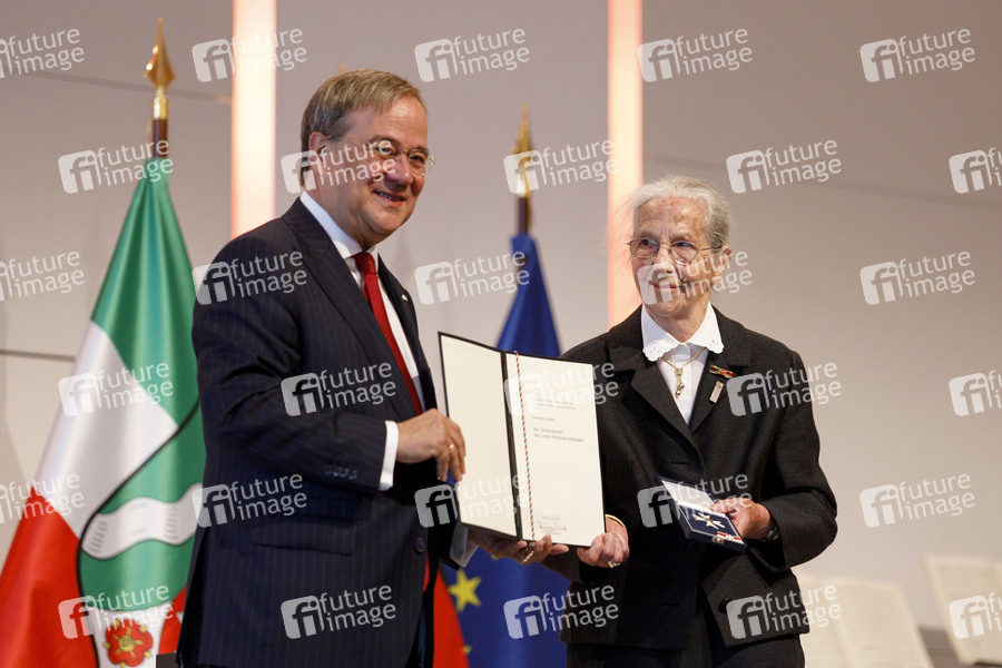 Armin Laschet und Erika Meyer zu Drewer bei der Verleihung des Landesverdienstordens Nordrhein-Westfalen in der Kölner Flora. Köln, 23.08.2020