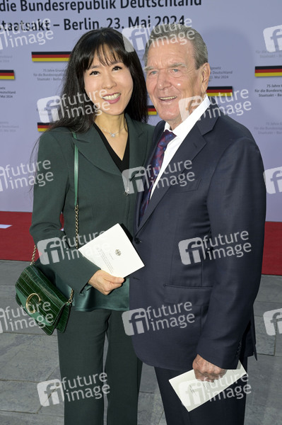 Gerhard Schröder mit Ehefrau So-yeon Schröder-Kim beim Staatsakt zu 75 Jahre Grundgesetz auf dem Forum zwischen Bundestag und Kanzleramt. Berlin, 23.05.2024