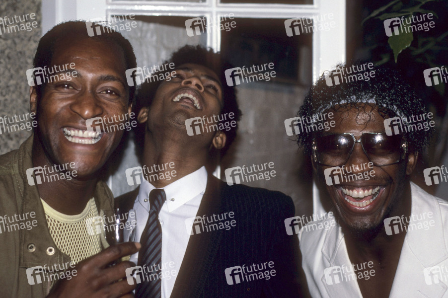 Errol Kennedy, Leee John und Ashley Ingram von Imagination bei der Party zum Release der Thompson Twins LP 'Into the Gap' im Stocks Club. Aldbury, 26.06.1984