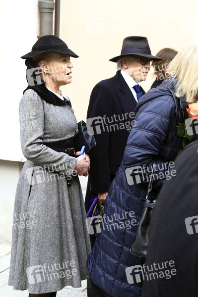 Barbara Engel und Bernd Herzsprung im Trauerzug zur Beisetzung von Fritz Wepper im Familiengrab der Familie Wepper auf dem Friedhof Neuhausen im Münchner Stadtteil Neuhausen. München, 10.04.2024