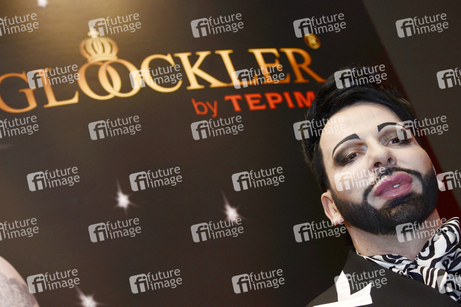 Harald Glööckler präsentiert seine Fußmatten Kollektion 'The Floor Collection Glööckler by Tepima' exklusiv auf der Teppichmesse Domotex auf dem Messegelände, Hannover