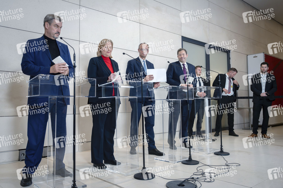 Bundesministerin für Arbeit und Soziales, Politikerin, SPD, Parteivorsitzende, Bundeskanzler, CDU, Ministerpräsident Bayern, CSU, Vizekanzler, Bundesminister der Finanzen, Parteivorsitzender, PK, Pressekonferenz, Koalitionsausschuss, Politik