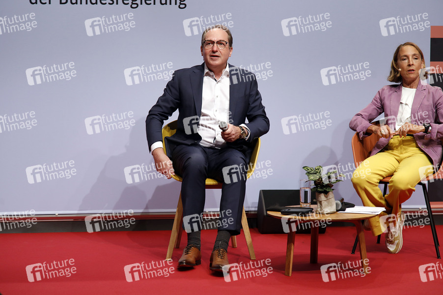 Alexander Dobrindt und Andrea Thilo beim Tag der offenen Tür der Bundesregierung im Bundespresseamt. Berlin, 23.08.2025