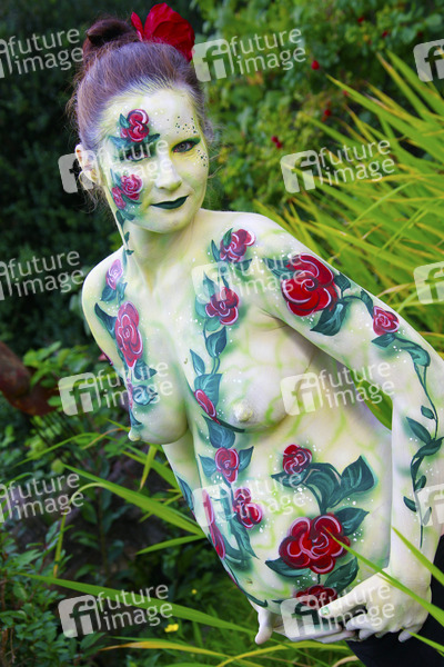 Bodypainting, Erotik, Frau, Mädchen, nackt, draußen, weiblich, Körperkunst, Kunst, Malerei, schwanger, Bauch, Garten, erotic, woman, girl, nude, outdoor, female, body art, body painting, pregnant, garden