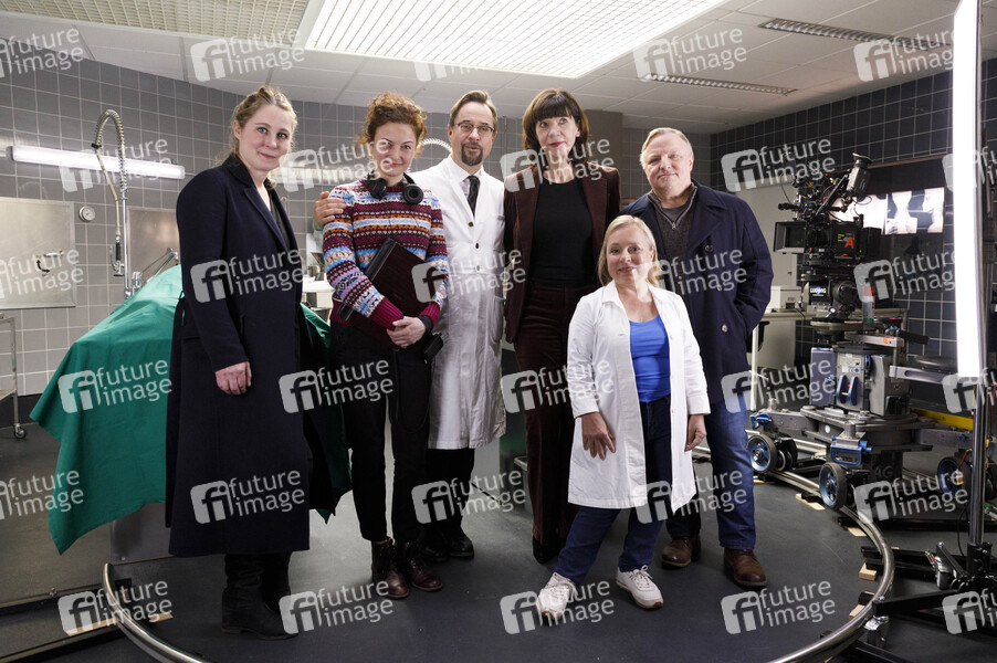 Redakteurin, Regisseurin, Schauspieler, Produzentin, Schauspielerin, Prominenz, TV, Fernsehen, Krimi, Filmset, Fotocall, Photocall, Settermin, Dreharbeiten, TV-Film, Krimireihe, Serie, ARD, Das Erste, WDR, Tatort Münster, Rechtsmedizin
