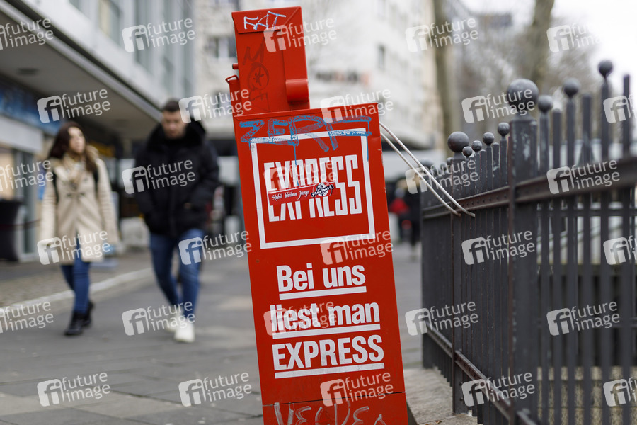 Express-Logo, Kiosk, Zeitschriftenhandel, Zeitungsabo, gedruckte Auflage, Zeitungsautomat, Zeitungsautomaten, Selbstbedienung, Zeitung, Tageszeitung, Zeitungen, Tageszeitungen, Boulevard, Boulevardzeitung, Boulevardmedien, Berichterstattung, Sensationsberichterstattung, Zitieren, Freigabe, Boulevardjournalismus, Kölner Zeitungen, Neven DuMont, Express-Auflage, Dumont-Verlag, Lokalpresse, Neuigkeiten, News, Nachrichten, Lokalredaktion, Mantelteil, Lokales, Lokalressort, Journalismus, Lokaljournalismus, Medienbranche, Tagespresse, Presse, Pressefreiheit, Presseerzeugnis, Auflage, Auflagen, Leserschaft, Reichweite, Medien, Schlagzeile, Titelseite, Pressekodex, Presserat, Zeitungssterben, Zeitungskrise, Medienkrise, Printkrise, Auflagenschwund, Zeitungsabo, Zeitungsabos, Zeitungsleser, Leser, Bericht, Kommentar, Glosse, Meinung, Ausgewogenheit, Sorgfaltspflicht, Vielfalt, Berichterstattung, Alte Medien, Mainstream, Traditionsblätter, Verlagshäuser, Druck-Erzeugnisse, Altpapier, Zeitungspapier, Massenmedien, Gewaltenteilung, 4. Gewalt, Vierte Gewalt, Gleichschaltung, Propaganda, Freie Presse, Presseausweis, Tagespauschale, Pauschalist, Zeilengeld, Zeilenhonorar, Mainstreammedien, Printausgaben, Mediennutzung, IVW, Qualitätsmedien, Medienkompetenz, Einheitsredaktion, Gemeinschaftsredaktion, Verlag, Verlage, Verleger, Auflagenkurve, Medienreichweite, Zeitungskasten, Selbstbedienungsautomat, Zeitungsausgabe, Titelblatt, Zeitungsauflage, Zeitungssterben, Gegendarstellung, Deutscher Presserat, Lügenpresse, Bei uns liest man Express, Presserecht, Symbolbild, Symbolfoto
