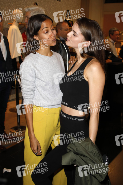 Rabea Schif und Lisa Tomaschewsky bei der Eröffnung des ersten temporären AlphaTauri 3D-Knit Labs im KaDeWe. Berlin, 03.04.2019