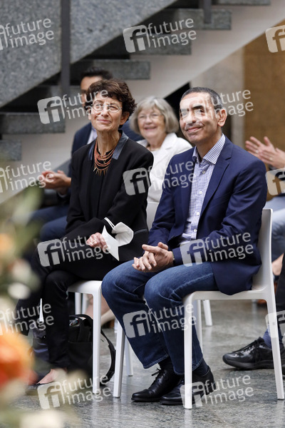 Özlem Türeci und Ugur Sahin, die Gründer des Biotechnologie-Unternehmens Biontech, bei der Verleihung der Ehrendoktorwürde der Medizinischen Fakultät der Uni Köln und der Eintragung ins Goldene Buch der Stadt Köln. Köln, 17.09.2021