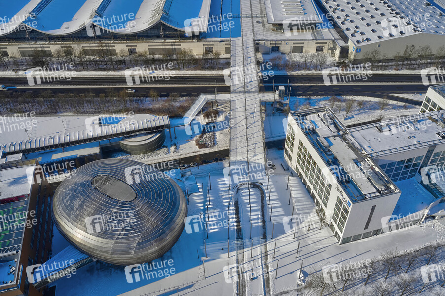 Luftbild vom Planet M auf dem EXPO 2000 Areal im Winter. Hannover, 11.02.2021