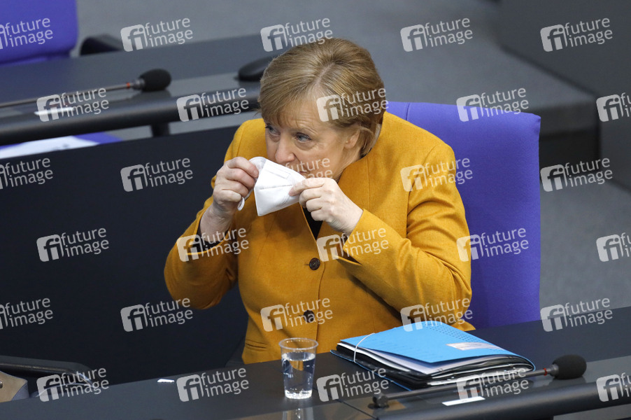Angela Merkel in der 217. Sitzung des Deutschen Bundestages im Reichstagsgebäude. Berlin, 24.03.2021