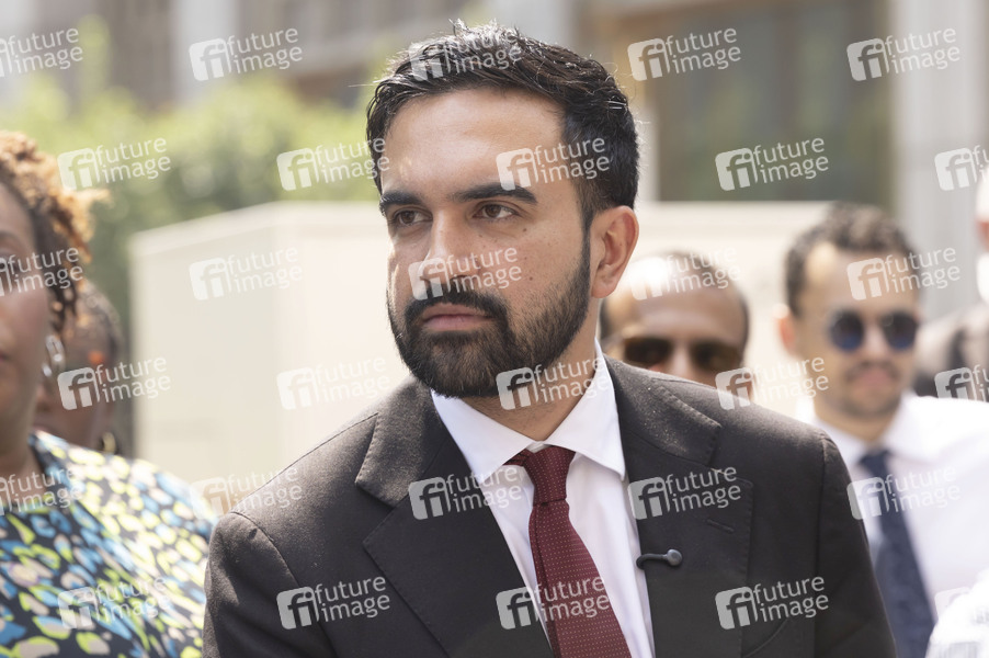Zohran Mamdani bei einer Wahlkampfveranstaltung für das Bürgermeisteramt auf der Federal Plaza. New York, 07.08.2025