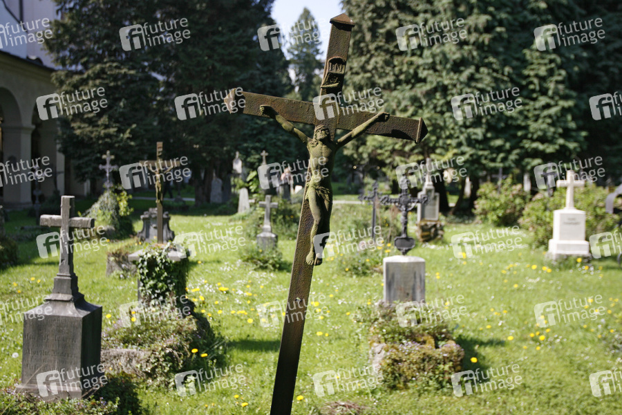 Friedhof St. Sebastian, Baumeister Andrea Bertoleto, errichtet zwischen 1595 und 1600, Grabsteine, Grabkreuze, Kruzifix, Kreuzigung, Jesus, Corpus Christi