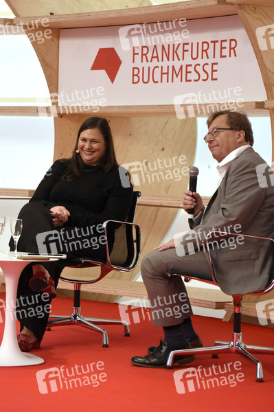 Kelly Luegenbiehl und Rüdiger Wischenbart beim 'The Global 50 CEO Talk' auf der 71. Frankfurter Buchmesse 2019 im Frankfurt Pavilion auf der Messe Frankfurt. Frankfurt am Main, 16.10.2019