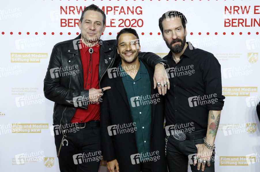 Sascha Vollmer, Kostja Ullmann und Alec Völkel beim NRW Empfang während der Berlinale 2020 / 70. Internationale Filmfestspiele Berlin in der Vertretung des Landes Nordrhein-Westfalen. Berlin, 23.02.2020