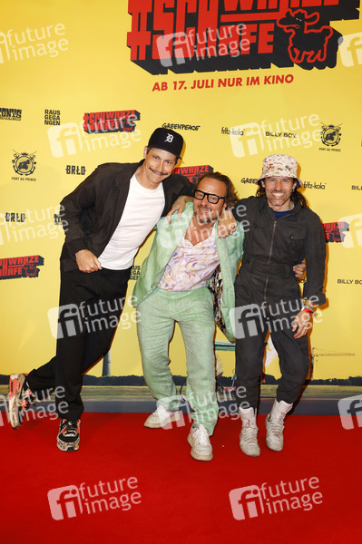 Marc Hosemann, Oliver Rihs und Tobias Jundt bei der Premiere des Kinofilms '#SchwarzeSchafe' im Kino in der KulturBrauerei. Berlin, 15.07.2025