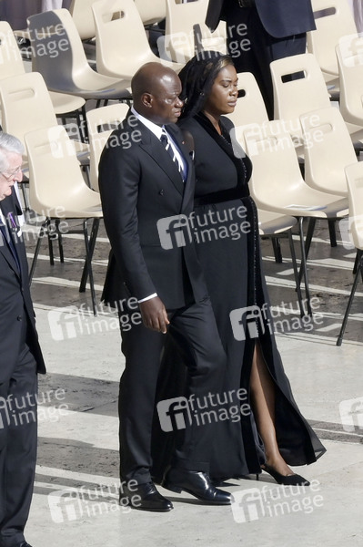 Brice Oligui Nguema mit Ehefrau Zita Oligui Nguema bei der Trauermesse für den verstorbenen Papst Franziskus auf dem Petersplatz. Vatikanstadt, 26.04.2025