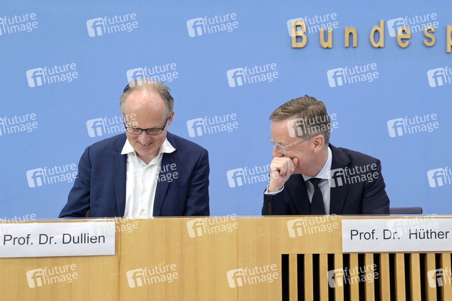 Sebastian Dullien und Michael Hüther bei der Bundespressekonferenz Vorstellung der Studie: Herausforderungen für die Schuldenbremse - Investitionsbedarfe in der Infrastruktur und für die Transformation im Haus der Bundespressekonferenz. Berlin, 14.05.2024