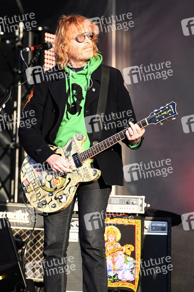 Christof Stein-Schneider von Fury in the Slaughterhouse live beim Autokultur-Konzert auf dem Schützenplatz. Die Besucher verfolgen unter Berücksichtigung klarer Hygiene-Vorschriften während der Corona-Krise den Auftritt aus dem Auto. Hannover, 14.05.2020