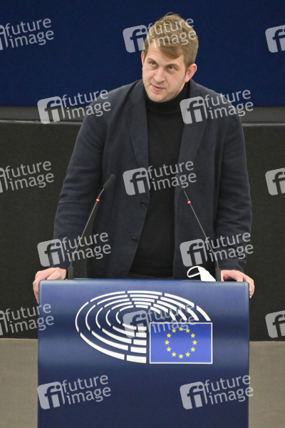Michael Bloss bei einer Plenartagung zur Überarbeitung der Marktstabilitätsreserve für den EU-Emissionshandel im Plenarsaal des Europäischen Parlaments. Straßburg, 04.04.2022
