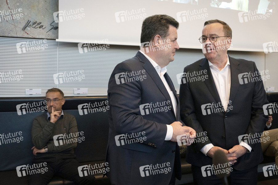 Hubertus Heil und Boris Pistorius bei der Fraktionssitzung der SPD-Bundestagsfraktion im Reichstagsgebäude. Berlin, 10.03.2025