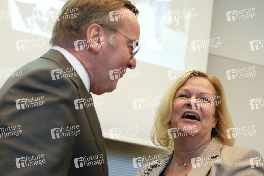 Boris Pistorius und Nancy Faeser bei der Fraktionssitzung der SPD-Bundestagsfraktion im Reichstagsgebäude. Berlin, 05.11.2024