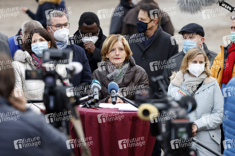 Daniela Schmitt, Malu Dreyer und Katrin Eder besuchen sechs Monate nach der Jahrhundertflut das Ahrtal, um Bestandsaufnahme in der Ortsgemeinde Schuld zu machen. Schuld, 12.01.2022