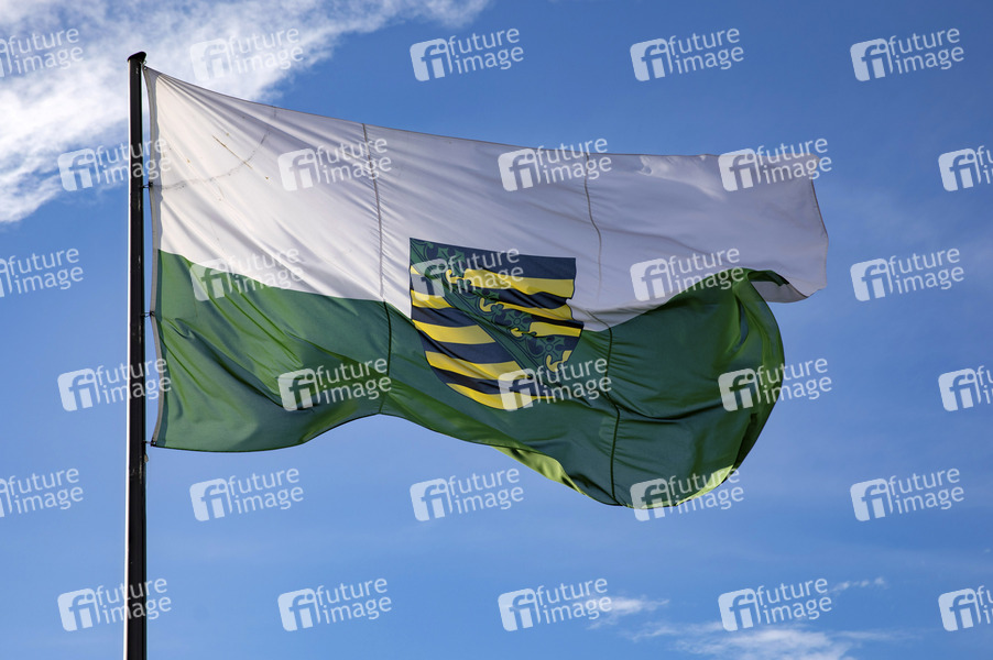Flagge des Bundeslandes Sachsen mit Wappen. Koblenz, 17.11.2020