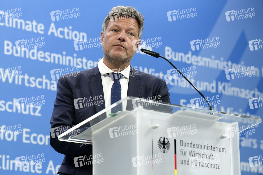 Robert Habeck bei der Pressekonferenz zum Konzept 'Leitmärkte für klimafreundliche Grundstoffe' im Bundeministerium für Wirtschaft und Klimaschutz. Berlin, 22.05.2024