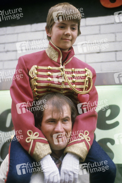 Fish mit LP-Cover-Model Robert Mead beim Photocall zum Release des Marillion Albums 'Misplaced Childhood' im Ronnie Scotts. London, 15.06.1985