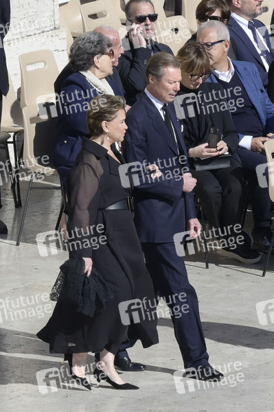 Großherzog Henri von Luxemburg mit Ehefrau Maria Teresa von Luxemburg bei der Trauermesse für den verstorbenen Papst Franziskus auf dem Petersplatz. Vatikanstadt, 26.04.2025