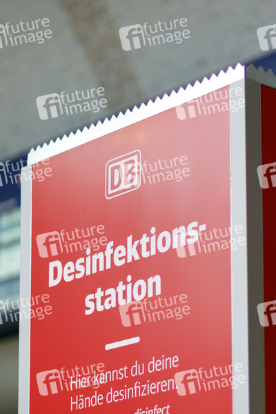 Desinfizieren, Desinfektion, Desinfektionsstationen, Desinfektionsstation, Desinfektionsmittelspender, desinfiziert, Hände desinfizieren, Hände waschen, Sterilium, Alkohol, Desfinfektionsmittel, Gesundheit, Lock Down, Corona-Regeln, Infektionsschutz, Hände waschen, Hygiene, Handhygiene, Desinfektionsspender, Corona, Virus, Coronavirus, Ansteckung, R-Wert, Infektionsrate, Inzidenzwert, Eindämmung, Reiseverkehr, öffentliche Verkehrsmittel, Bahnhof, Deutsche Bahn, Symbolbild, Symbolfoto