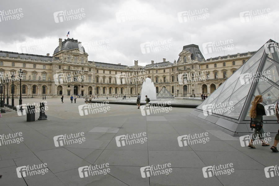 frühere französische Königsresidenz, das drittgrößte Museum der Welt, Baubeginn 1190, der Louvre entwickelte sich aus eine ganzen Reihe von Bau- und Umbaumaßnahmen, Glaspyramide im Innenhof 1989 erbaut vom Architekten Ieoh Ming Pei