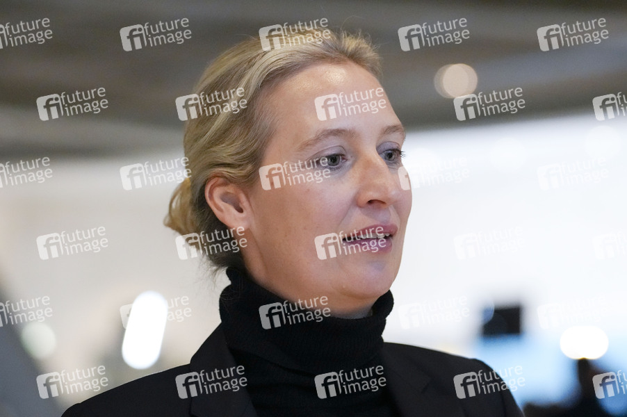 Alice Weidel beim Pressestatement zur Fraktionssitzung der AfD-Bundestagsfraktion im Reichstagsgebäude. Berlin, 03.12.2024