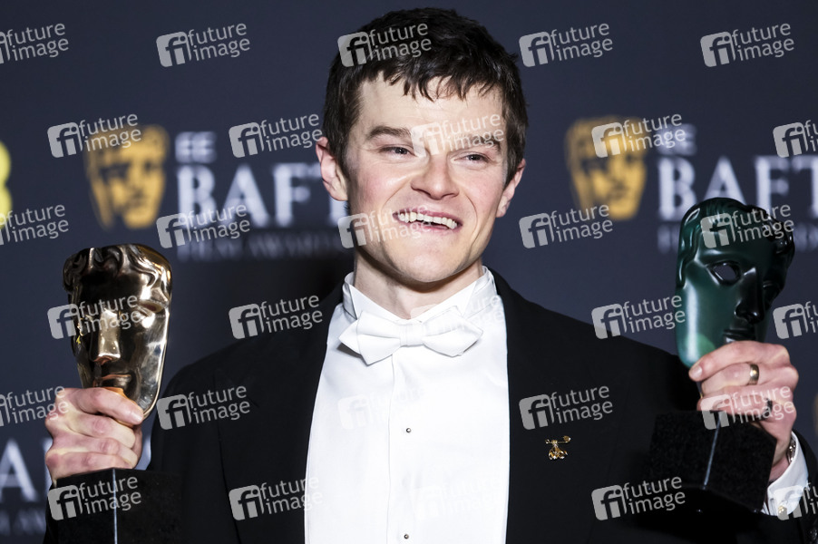 Robert Aramayo mit den Preisen für den besten Hauptdarsteller in 'I Swear' und den besten Nachwuchsdarsteller bei der Verleihung der BAFTA Film Awards 2026 / 79th British Academy Film Awards in der Royal Festival Hall. London, 22.02.2026