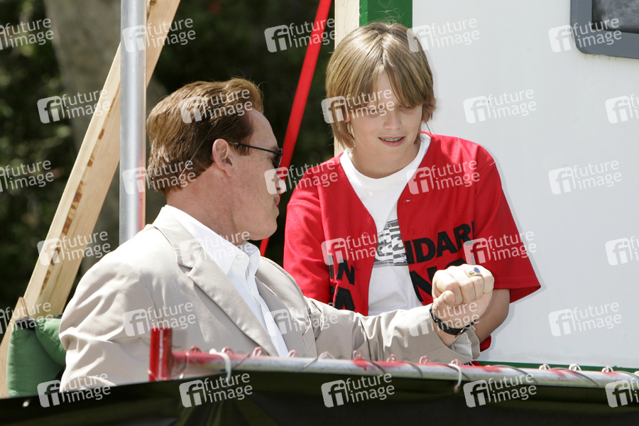 Arnold Schwarzenegger mit Sohn Patrick Schwarzenegger bei der Premiere des Kinofilms 'The Benchwarmers / Die Bankdrücker' mit Softball-Spiel 'Stars gegen Jugend' im Sunset Canyon Recreation Center - UCLA Campus. Los Angeles, 02.04.2006