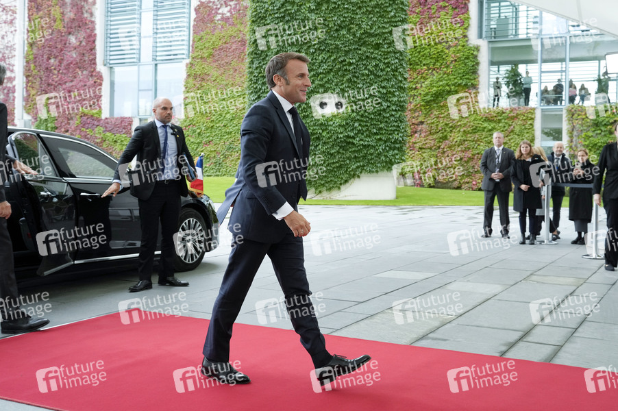 Emmanuel Macron beim Empfang des Staatspräsidenten der Französischen Republik zu einem gemeinsamen Gespräch mit Bundeskanzler Olaf Scholz im Bundeskanzleramt. Berlin, 02.10.2024