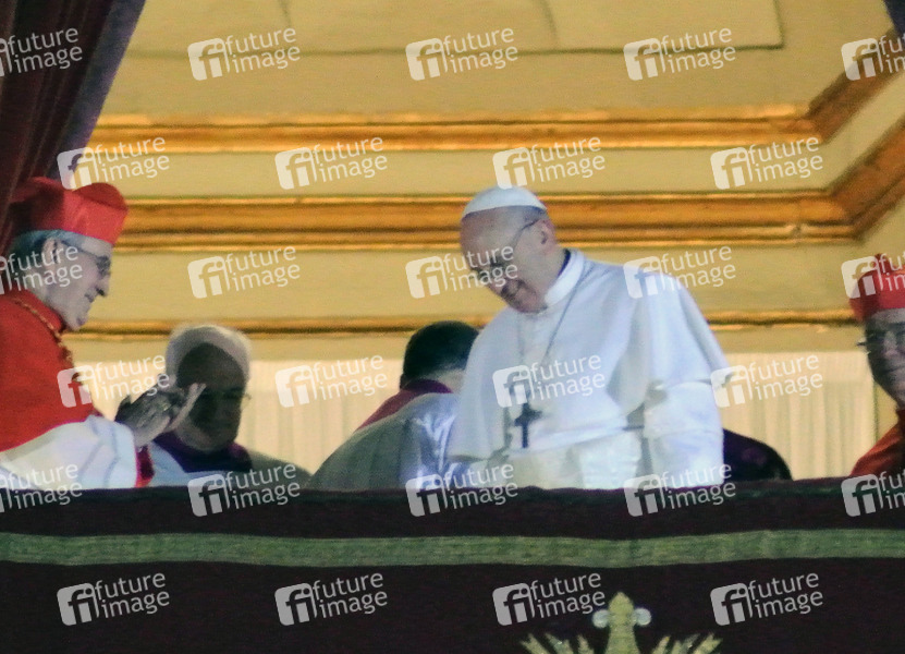Wahl vom argentinischen Kardinal Jorge Mario Bergoglio zu Papst Fanziskus. Papst Franziskus bei seinem ersten Auftritt auf dem Balkon vom Petersdom. Vatikanstadt, 13.03.2013