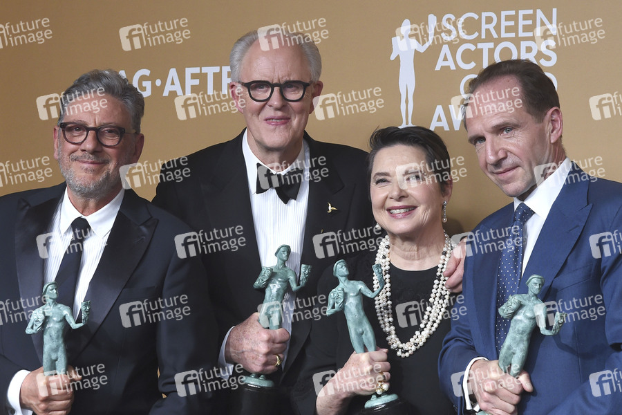 Sergio Castellito, John Lithgow, Isabella Rossellini und Ralph Fiennes mit dem Preis für das beste Kino-Ensemble in 'Konklave' beim Preisträger-Photocall der 31. Screen Actors Guild Awards 2025 im Shrine Auditorium and Expo Hall. Los Angeles, 23.02.2025